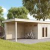 Deze tuinhuis met veranda is gemaakt van hoogste kwaliteit Noord-Europees Vurenhout. Vurenhout heeft door zijn langzame groei een fijne vezelstructuur en bevat weinig hars en heeft kleine, vaste kwasten.