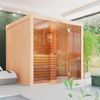 Met de Lumen haal je een elegante en lichte binnensauna in huis die direct opvalt door de royale glaswand aan de voorzijde. De stevige wanden van 77 mm dik isoleren goed en zijn verkrijgbaar in vuren- of elzenhout, afhankelijk van je voorkeur. Binnen zorgen de luxe banken voor een comfortabele en stijlvolle beleving, perfect voor een moment van rust. De combinatie van glas, hout en strak design maakt deze sauna tot een moderne toevoeging aan je interieur. De Lumen is perfect als je houdt van een stijlvolle en moderne sauna.