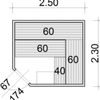 Bij deze sauna adviseren wij een saunakachel van 8 kW aan.
