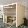 De Rio Glass is een moderne massieve binnensauna met een open en lichte uitstraling dankzij het royale gebruik van glas. Deze Finse sauna van vurenhout heeft stevige 45 mm dikke wanden en wordt geleverd in elementen die je makkelijk zelf monteert. Je hebt keuze uit verschillende indelingen en maatwerk is ook mogelijk, zodat de sauna altijd perfect aansluit bij jouw ruimte en wensen. De combinatie van glas en hout zorgt voor een strak ontwerp met een warme sfeer.