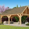 Overkapping Lodewijk is opgebouwd uit dikke, vurenhouten balken en heeft daardoor een robuuste uitstraling. Dankzij het zadeldak met de hoge nok, wordt de hoogte benadrukt en voelt de overkapping heerlijk ruim.