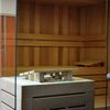 De hoofdsteun is gemaakt van Elzenhout. Deze houtsoort heeft een lichte roodachtige warme toon met weinig tot geen kwasten. Elzenhout geleidt warmte minder goed waardoor het relatief koel blijft tijdens het gebruik van de sauna, hierdoor is dit een erg prettige houtsoort om op te zitten of liggen.