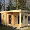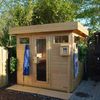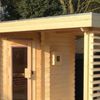 Vergeet niet de bovenzijde van de kast af te werken dakbedekking en het hout, net als de buitenkant van uw sauna, goed in de beits te zetten.