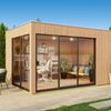 Azalp tuinkantoor Ponos biedt een extra leefruimte in je tuin. We hebben het dan wel tuinkantoor genoemd, maar dit model is ook zeer geschikt als hobbyruimte, poolhouse, buitenwoonkamer, atelier of guest house. De opties zijn eindeloos! Met de Ponos creëer je in ieder geval een fijne buitenruimte waar je je lekker in terug kunt trekken. Om ervoor te zorgen dat je comfortabel kunt werken tijdens alles seizoen, zijn de wanden van de Ponos standaard geïsoleerd met isolatie wol. Dit zorgt voor een aangenamere temperatuur in de winter en de zomer. De twee glazen schuifdeuren zorgen voor een makkelijke doorgang en veel natuurlijk licht. Zo kan je er heel het jaar door van de Ponos genieten!