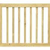 De poort is gemaakt van geïmpregneerd vuren en is RVS geschroefd, zodat het goed beschermd is tegen weersinvloeden. De poort bestaat uit 7 spijlen van 25 mm en heeft een omlijsting van 45 x 60 mm.