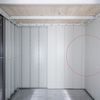 De grijswitte binnenwandpanelen worden eenvoudig in de zijwanden ingehangen en vastgeschroefd.