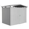 Dit metalen tuinhuis met zadeldak met rondom acrylglas en dakoverstek in je tuin geeft je de mogelijkheid om al jouw spullen op de slaan en je tuin en garage hierdoor vrij van rommel te houden. De bergingen van Biohort worden gekenmerkt door de efficiënte accessoires die standaard worden meegeleverd én de ruime keus in extra opties. Je kunt er dus gemakkelijk jouw fiets, bezem, hark, schop, kruiwagen, steekwagen en schappen voor kleine spullen in kwijt.