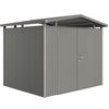 Dit metalen tuinhuis met zadeldak met rondom acrylglas en dakoverstek in je tuin geeft je de mogelijkheid om al jouw spullen op de slaan en je tuin en garage hierdoor vrij van rommel te houden. De bergingen van Biohort worden gekenmerkt door de efficiënte accessoires die standaard worden meegeleverd én de ruime keus in extra opties. Je kunt er dus gemakkelijk jouw fiets, bezem, hark, schop, kruiwagen, steekwagen en schappen voor kleine spullen in kwijt.