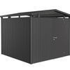 Dit metalen tuinhuis met zadeldak met rondom acrylglas en dakoverstek in je tuin geeft je de mogelijkheid om al jouw spullen op de slaan en je tuin en garage hierdoor vrij van rommel te houden. De bergingen van Biohort worden gekenmerkt door de efficiënte accessoires die standaard worden meegeleverd én de ruime keus in extra opties. Je kunt er dus gemakkelijk jouw fiets, bezem, hark, schop, kruiwagen, steekwagen en schappen voor kleine spullen in kwijt.