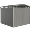 Dit metalen tuinhuis met zadeldak met rondom acrylglas en dakoverstek in je tuin geeft je de mogelijkheid om al jouw spullen op de slaan en je tuin en garage hierdoor vrij van rommel te houden. De bergingen van Biohort worden gekenmerkt door de efficiënte accessoires die standaard worden meegeleverd én de ruime keus in extra opties. Je kunt er dus gemakkelijk jouw fiets, bezem, hark, schop, kruiwagen, steekwagen en schappen voor kleine spullen in kwijt.