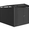 Dit metalen tuinhuis met zadeldak met rondom acrylglas en dakoverstek in je tuin geeft je de mogelijkheid om al jouw spullen op de slaan en je tuin en garage hierdoor vrij van rommel te houden. De bergingen van Biohort worden gekenmerkt door de efficiënte accessoires die standaard worden meegeleverd én de ruime keus in extra opties. Je kunt er dus gemakkelijk jouw fiets, bezem, hark, schop, kruiwagen, steekwagen en schappen voor kleine spullen in kwijt.