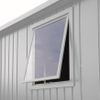Het complete zijwand element met metalen omlijsting (kunsstofglas) brengt daglicht in uw berging (raamopening 50 x 60 cm)