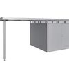 Zo ontstaat een overdekte open ruimte ter grootte van de oppervlakte van één berging of van een gekoppelde berging. De Alu-steunen zijn voorzien van in hoogte vestelbare voeten. Incl. regenpijpset.