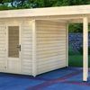 Tuinhuis Bremen is het kleinste tuinhuis van de serie en heeft een afmeting van 200x300 cm. Dit tuinhuis is vervaardigd uit blank* Vurenhout. De Bremen is te bestellen als los tuinhuis, maar kan ook gecombineerd worden met een luifel van 200, 300, 400 of 500 cm. Wil je graag een afgesloten overkapping creëren? Kies dan ook voor een achter- en/of zijwand! De zijwand is 300 cm en past daarbij bij iedere maat luifel. De achterwand is 200 cm, kies daarom bij grotere maten luifels voor twee of meer achterwanden.