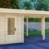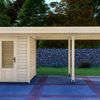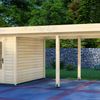 Tuinhuis Bremen is het kleinste tuinhuis van de serie en heeft een afmeting van 200x300 cm. Dit tuinhuis is vervaardigd uit blank* Vurenhout. De Bremen is te bestellen als los tuinhuis, maar kan ook gecombineerd worden met een luifel van 200, 300, 400 of 500 cm. Wil je graag een afgesloten overkapping creëren? Kies dan ook voor een achter- en/of zijwand! De zijwand is 300 cm en past daarbij bij iedere maat luifel. De achterwand is 200 cm, kies daarom bij grotere maten luifels voor twee of meer achterwanden.