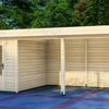 Tuinhuis Bremen is het kleinste tuinhuis van de serie en heeft een afmeting van 200x300 cm. Dit tuinhuis is vervaardigd uit blank* Vurenhout. De Bremen is te bestellen als los tuinhuis, maar kan ook gecombineerd worden met een luifel van 200, 300, 400 of 500 cm. Wil je graag een afgesloten overkapping creëren? Kies dan ook voor een achter- en/of zijwand! De zijwand is 300 cm en past daarbij bij iedere maat luifel. De achterwand is 200 cm, kies daarom bij grotere maten luifels voor twee of meer achterwanden.