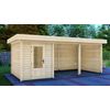 Tuinhuis Bremen is het kleinste tuinhuis van de serie en heeft een afmeting van 200x300 cm. Dit tuinhuis is vervaardigd uit blank* Vurenhout. De Bremen is te bestellen als los tuinhuis, maar kan ook gecombineerd worden met een luifel van 200, 300, 400 of 500 cm. Wil je graag een afgesloten overkapping creëren? Kies dan ook voor een achter- en/of zijwand! De zijwand is 300 cm en past daarbij bij iedere maat luifel. De achterwand is 200 cm, kies daarom bij grotere maten luifels voor twee of meer achterwanden.