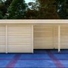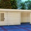 Tuinhuis Hamburg heeft een afmeting van 400x300 cm. Dit tuinhuis is vervaardigd uit blank* Vurenhout. De Hamburg is te bestellen als los tuinhuis, maar kan ook gecombineerd worden met een luifel van 200, 300, 400 of 500 cm. Wil je graag een afgesloten overkapping creëren? Kies dan ook voor een achter- en/of zijwand! De zijwand is 300 cm en past daarbij bij iedere maat luifel. De achterwand is 200 cm, kies daarom bij grotere maten luifels voor twee of meer achterwanden.