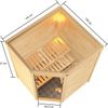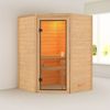 Met de Karibu Antonia haal je een knusse hoeksauna in huis die speciaal is ontworpen voor twee personen. De massieve wanden van 38 mm dik vurenhout zorgen voor een stabiele constructie en een sfeervolle uitstraling. Dankzij het hoekontwerp past deze sauna moeiteloos in uiteenlopende interieurs en benut je de beschikbare ruimte optimaal. Een combinatie van praktisch formaat en authentieke Finse saunabeleving maakt de Karibu Antonia een aantrekkelijke keuze voor thuisgebruik.