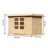 Dit model is gemaakt van vurenhout. Vurenhout is een heel makkelijk te bewerken hout dat erg sterk is. Vurenhout heeft door zijn langzame groei een fijne vezelstructuur en bevat weinig hars en heeft kleine, vaste noesten. Wij raden sterk aan om vurenhout te behandelen met een beits om het hout beter te beschermen tegen de verschillende weersomstandigheden. Wil je het tuinhuis zelf niet behandelen? Dan is het ook mogelijk deze behandeld te bestellen in de kleuren antraciet (RAL 7016) of terra grijs (RAL 060.40.05).