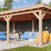 De Nerva Nero overkapping van Kirk and Michaels is een prachtige overkapping met plat dak en overstek. Deze overstek geeft deze overkapping een enigszins traditioneel uiterlijk. Dit zorgt voor een prachtige sfeer in de tuin en creëert een mooie plek voor al uw zomerse barbecues, tuinfeesten of voor een mooie loungeplek, waar je samen met vrienden en familie kan genieten. De stijl van deze overkapping is speciaal ontwikkeld door Kirk and Michaels voor iedereen die van traditioneel houdt, maar toch een stijlvolle overkapping als echte toevoeging in de tuin wilt. De constructie bestaat uit een geschaafde Douglashouten frame met slanke staanders van 14 x 14 cm, schoren en een overstek van 30 cm.
