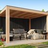 Overkapping Serius van Kirk and Michael’s is een stijlvolle en moderne toevoeging aan de tuin. De zwart geverfde verticale vurenhouten wanden zorgen ook voor extra privacy en dat je beschut bent tegen verschillende weersomstandigheden: van wind tot regen en als schaduwplek wanneer de zon fel schijnt. Creëer met deze overkapping je eigen buitenkamer, geniet van het buitenleven met een hapje en drankje of kom tot rust met een goed boek. De constructie bestaat uit een geschaafde Douglashouten frame met robuuste staanders van 19.5x19.5 cm.