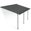 Het frame is gemaakt van hoogwaardig aluminium en afgewerkt met een grijze poedercoating, wat een moderne uitstraling geeft en uitstekende bescherming biedt tegen weersinvloeden. De 6 mm dikke polycarbonaat dakpanelen in een stijlvolle grijze tint beschermen je tegen de zon. Dankzij de UV-bestendige eigenschappen van de polycarbonaat panelen verkleuren ze niet, waardoor de veranda zijn kwaliteit en uitstraling jarenlang behoudt.