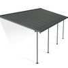 Het frame is gemaakt van hoogwaardig aluminium en afgewerkt met een grijze poedercoating, wat een moderne uitstraling geeft en uitstekende bescherming biedt tegen weersinvloeden. De 6 mm dikke polycarbonaat dakpanelen in een stijlvolle grijze tint beschermen je tegen de zon. Dankzij de UV-bestendige eigenschappen van de polycarbonaat panelen verkleuren ze niet, waardoor de veranda zijn kwaliteit en uitstraling jarenlang behoudt.