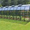 De wanden van de kas zijn gemaakt van polycarbonaat. Dat is een erg licht en sterk materiaal dat doorzichtig is. Hierdoor is de lichtinval optimaal, maar zullen de planten niet verbranden door de bescherming tegen schadelijke Uv-stralen. Het frame is gemaakt van aluminium. Dit is onderhoudsvrij en erg stevig.