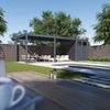 De Porchenzo Paros Max met berging combineert het comfort van de Paros Max lamellen overkapping met het gemak van een berging. Deze robuuste aluminium overkapping met staanders van 11.6x11.6 cm zorgt voor een modern en strak design. Naast een ruime overkapping met verstelbaar lamellen dak is het uitgebreid met een berging, ideaal voor het veilig opbergen van fietsen, gereedschap of tuinmeubelen. De berging is afgewerkt met stijlvolle composiet design wanden, verkrijgbaar in teak en antraciet, waardoor de overkapping naadloos aansluit bij elke tuin. Met de Paros Max kies je voor een onderhoudsarme en hoogwaardige oplossing die niet alleen praktisch is, maar ook een luxe uitstraling geeft aan jouw buitenruimte.
