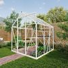 Daarnaast is de kas voorzien van dakgoten, compleet met twee regenpijpen, waarmee je eenvoudig regenwater kunt opvangen. Kate I en II hebben 1 dakraam, Kate III en IV heeft er 2 en Kate V heeft 3 dakramen. Met een nokhoogte van 214,5 cm biedt deze kas een comfortabele werkhoogte, zodat je met gemak kunt kweken.Tuinkas Kate is verkrijgbaar in vijf verschillende dieptematen, met oppervlakken variërend van 3,7 tot 8,3 m². Het model is leverbaar in drie kleuren: wit, groengrijs en zwart – en de profielen hebben een elegante matte afwerking. Of je nu klein of groot wilt kweken, tuinkas Kate biedt de ideale ruimte om jouw planten optimaal te laten groeien.