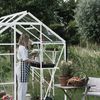 Daarnaast is de kas voorzien van dakgoten, compleet met twee regenpijpen, waarmee je eenvoudig regenwater kunt opvangen. Kate I en II hebben 1 dakraam, Kate III en IV heeft er 2 en Kate V heeft 3 dakramen. Met een nokhoogte van 214,5 cm biedt deze kas een comfortabele werkhoogte, zodat je met gemak kunt kweken.Tuinkas Kate is verkrijgbaar in vijf verschillende dieptematen, met oppervlakken variërend van 3,7 tot 8,3 m². Het model is leverbaar in drie kleuren: wit, groengrijs en zwart – en de profielen hebben een elegante matte afwerking. Of je nu klein of groot wilt kweken, tuinkas Kate biedt de ideale ruimte om jouw planten optimaal te laten groeien.