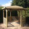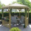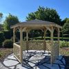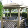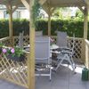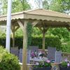 Let op: het houten dak van dit prieel mag niets als waterdicht worden beschouwd.