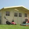 Belangrijk: de meegeleverde dakbedekking bij dit tuinhuis is slechts geschikt als eerste daklaag en niet geschikt om uw dak voor langere tijd mee af te werken. Onze tip: bestel dakshingles of een complete set Onduvilla.