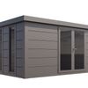Dit moderne tuinhuis zorgt voor een aangename plek in jouw tuin. Het is dan ook niet voor niets dat er twee grote kiepramen in de wand zijn geïntegreerd. Ook de deur is voorzien van veel glas, zodat er voldoende daglicht de ruimte binnenvalt.