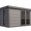 Dit moderne tuinhuis zorgt voor een aangename plek in jouw tuin. Het is dan ook niet voor niets dat er twee grote kiepramen in de wand zijn geïntegreerd. Ook de deur is voorzien van veel glas, zodat er voldoende daglicht de ruimte binnenvalt.