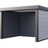 De daken van de Telluria-modellen zijn opgebouwd uit geïsoleerde stalen sandwichpanelen met een draagvermogen van 220 kg/m². Het isolatiemateriaal is volledig geïntegreerd in het paneel, waardoor het dak direct een isolerende werking biedt. Dit voorkomt condensvorming en zorgt voor een aangenaam binnenklimaat, ook bij wisselende temperaturen. Omdat de bovenkant van het dak al is afgewerkt, is extra dakbedekking niet nodig. Ongeacht de gekozen buitenkleur is de binnenzijde van het dak altijd wit.