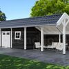 Een Trendhout kapschuur geeft je een overkapping én een berging. Zo heb je al je spulletjes dicht bij elkaar, blijft het droog en heb je alles binnen handbereik. Onder de overkapping heb je alle ruimte voor een loungeplek, buiteneetkamer of je kunt het zelfs gebruiken om je auto’s, fietsen of motoren te stallen. Bij deze kapschuur zijn de maatwerk opties enorm uiteenlopend. Je kan er bijvoorbeeld voor kiezen ramen erin te plaatsen, één deur of een dubbele deur of zelfs glazen (schuif)wanden. Aanvullend zijn er keuzes te maken in de kleur van het dak of van de houten wanden.