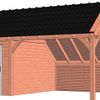 Een Trendhout kapschuur geeft je een overkapping én een berging. Zo heb je al je spulletjes dicht bij elkaar, blijft het droog en heb je alles binnen handbereik. Onder de overkapping heb je alle ruimte voor een loungeplek, buiteneetkamer of je kunt het zelfs gebruiken om je auto’s, fietsen of motoren te stallen. Bij deze kapschuur zijn de maatwerk opties enorm uiteenlopend. Je kan er bijvoorbeeld voor kiezen ramen erin te plaatsen, één deur of een dubbele deur of zelfs glazen (schuif)wanden. Aanvullend zijn er keuzes te maken in de kleur van het dak of van de houten wanden.