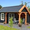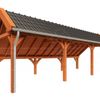 De Kapschuur de Hoeve XL van Trendhout is een stijlvol buitenverblijf met slanke palen van 14.5 x 14.5 cm. Dankzij de toepassing van getoogde schoren krijgt de overkapping een rustieke, landelijke uitstraling. De lage achterzijde creëert een intieme sfeer, terwijl de hoge voorzijde juist een gevoel van ruimte creëert. De kapschuur is verkrijgbaar in meerdere breedtes en een diepte van 3 of 4 meter.