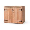 Deze kast is vervaardigd van hoogwaardig Douglas hout en is uitgerust met zwart, gegalvaniseerd hang- en sluitwerk, waardoor hij bestand is tegen weer en wind. Het gebruik van deze kwaliteitsmaterialen betekent dat de kast vrijwel geen onderhoud vereist en jarenlang meegaat. Zo kun je moeiteloos genieten van een opgeruimde en verzorgde buitenruimte.