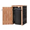 De ombouw is verkrijgbaar in drie verschillende maten, en deze specifieke variant is geschikt voor één kliko van maximaal 240 liter. Met de handige deur aan de voorzijde plaats je de container moeiteloos in de berging. Bovendien maakt de klep aan de bovenzijde het mogelijk om snel en eenvoudig afval weg te gooien.