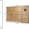 Er wordt een duidelijke montagehandleiding meegeleverd en doordat het tuinhuis in gemonteerde panelen wordt geleverd is deze snel en gemakkelijk in elkaar te zetten. Uiteraard wordt het benodigde montagemateriaal zoals schroeven meegeleverd. Wij adviseren om de montage met 2 personen uit te voeren. Dit maakt het een stuk gemakkelijker en gezelliger bovendien.
