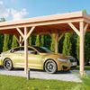 De Emperor carport bestaat uit een fijnbezaagd Douglashouten frame met slanke staanders van 12x12 cm, schoren en een overstek (tot 60 cm mogelijk) aan de voorkant. Dit geeft de Emperor een traditionele look en feel.