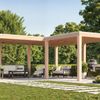 Zoek je meer dan alleen een standaard overkapping? Dan is de Ruby Essential hoek model de ideale keuze. Het frame van fijnbezaagd Douglashout met slanke staanders van 15x15 cm zorgt voor een strakke en moderne uitstraling. De unieke L-vorm van dit model biedt verschillende mogelijkheden met de indeling. Of je nu droomt van een uitgebreide buitenkeuken in de ene hoek en een loungeplek in de andere, of een combinatie van opslag en terras: de mogelijkheden zijn eindeloos. Beschikbaar in diverse afmetingen, zodat er altijd een match is voor jouw tuin!