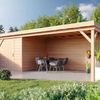 Ben je op zoek naar naar een overkapping met berging? Dan is dit WoodAcademy Bristol tuinhuis wellicht de perfecte match. De basis van het model bestaat uit een Douglas overkapping, door het plaatsen van Douglashouten wanden wordt er een tuinhuis gecreëerd. Het tuinhuis is te gebruiken voor verschillende doeleinden zoals een berging of hobbyruimte en de overkapping zorgt voor een fijne plek om heel het jaar door van je tuin te kunnen genieten. Het frame bestaat uit fijnbezaagd Douglashout met slanke staanders van 12x12 cm en overstek (tot 60 cm mogelijk) aan de voorkant. Dit geeft het model een traditionele look en feel.